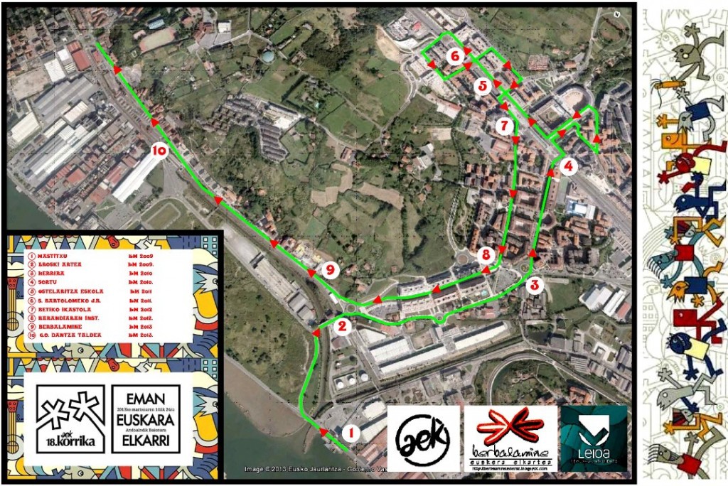18. Korrika abian da aurreko larunbatetik. Leioara iristen denerako 2000km baino gehiago izango ditu hanketan korrikak, helmugara (Baionara) iristeko azken 2 egunen zain. Gure herrira ostiralean helduko da, eguerdiko 13:00ak aldera (Metrotik). Hona hemen Leioatik egingo dituen 4km-en ibilbidea: