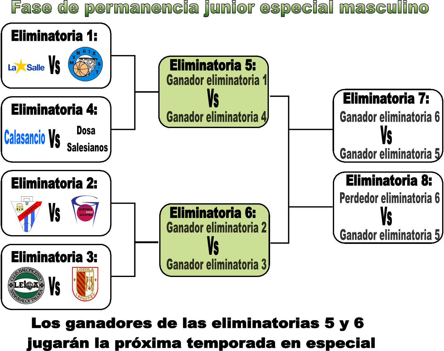 Esta fase de permanencia está compuesta por 8 equipos (4 de especial y 4 de primera) y de 3 eliminatorias. Para mantener la plaza en especial, hay que vencer dos eliminatorias, ya que al descender dos equipos vizcaínos de liga vasca a especial, solo quedan libres 2 plazas para los 8 equipos. La primera eliminatoria es contra Loiola 93-94 el domingo 10 de abril a las 19:00 en Kandelazubieta y el sábado 16 de abril a las 16.00 en Indautxu. En caso de vencer, la segunda sería el fin de semana del 30 de abril y 1 de mayo frente a Tabirako o Gernika.